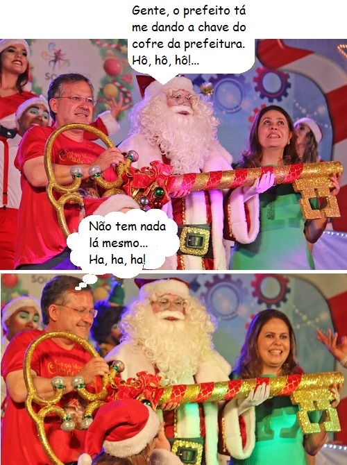 Olha aí os cliques da chegada do Papai Noel a Campo Mourão, sábado, na praça São José. Não faltou a tradicional entrega da "chave da cidade" ao "bom velhinho". A entrega foi feita pelo prefeito Tauillo Tezelli e pela primeira-dama Hosana Tezelli.