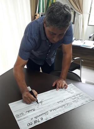Fênix - O prefeito Neno Molina repassou "checão" simbólico de R$ 6,7 mil para o asilo São Vicente de Paula. O dinheiro foi conseguido com o almoço servido aos participantes da Caminhada Internacional na Natureza.