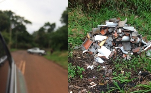 "Morador do Araucária descartou lixo no jardim Flora. Moradores das redondezas fotografaram a placa do morador. Pedimos para ele ir recolher e fazer o descarte correto".