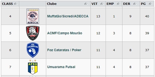 Umuarama está em sétimo lugar (37 pontos), ou seja, pode passar Campo Mourão caso vença a partida.