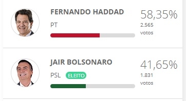 Em 12 cidades o candiato do PSL passou dos 60%.