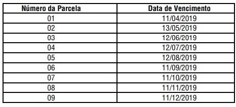 O parcelamento poderá ser feito em nove vezes, de abril a dezembro.