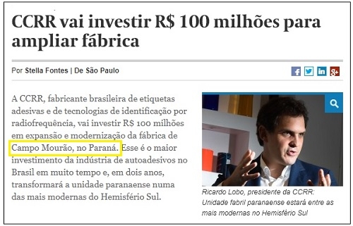 Trata-se de indústria de papel adesivado de Campo Mourão.
