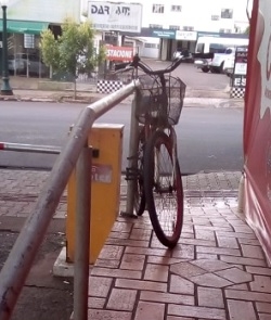 O acesso com rampa é para pedestres, mas tem sempre bicicleta travada no local. Isso no estacionamento da prefeitura.