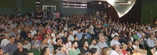 Auditório da UtFPR de Campo Mourão lotado nesta quinta-feira na audiência pública sobre o uso de agrotóxicos.