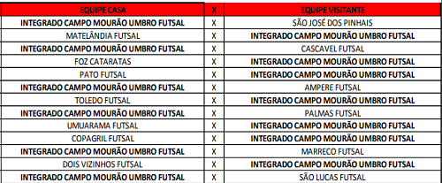 Saiu a tabela oficial da Chave Ouro do Paranaense de Futsal
