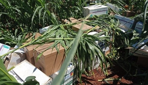 Um agricultor de Rancho Alegre do Oeste foi surpreendido nesta segunda-feira. Encontrou mais de 60 caixas com agrotóxicos em sua propriedade. Tudo escondido num milharal. A Polícia Militar foi chamada e precisou emprestar um caminhão da prefeitura para levar a carga para a delegacia de Goioerê. Os produtos foram avaliados em cerca R$ 500 mil.
