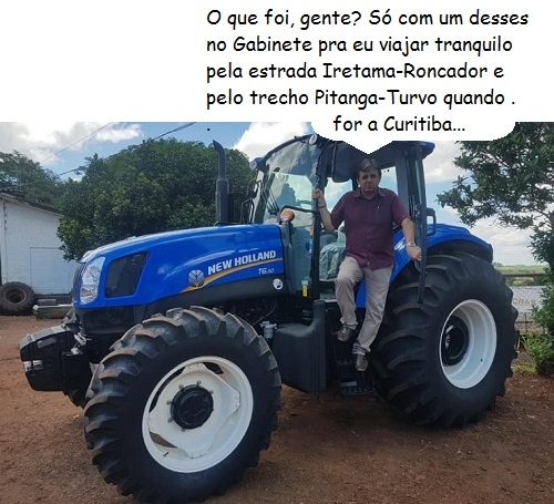 O clic é de Iretama, onde a prefeitura anunciou a compra de um novo trator e equipamentos para atendimento dos agricultores que necessitarem dos serviços. O investimento foi de R$ 230 mil, sendo R$ 190 mil de emenda parlamentar e R$ 40 mil em recursos próprios. O prefeito Wilson Bratac foi experimentar o tratorzão.