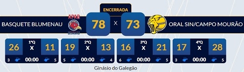 Perdeu neste domingo em Blumenau/SC (78 a 73) pela Liga Ouro de Basquete.