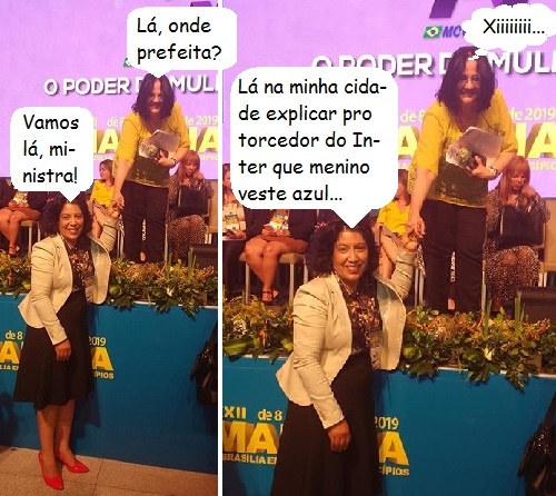 Os cliques são da Marcha dos Prefeitos a Brasília. A prefeita Suely Pereira, de Rancho Alegre do Oeste, esteve por lá e deu um jeitinho de conseguir uma foto ao lado da ministra Damares Alves (Mulher, Família e Direitos Humanos). É a ministra que ficou famosa pela frase dos "meninos de azul e meninas de rosa".