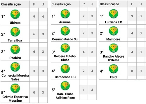 Luiziana venceu Mamborê fora de casa neste domingo e é o único time que segue 100% na Copa Comcam Sicredi. Araruna e Corumbataí do Sul empataram seus jogos e se mantiveram invictos. A rodada deste domingo teve apenas nove gols em seis partidas.