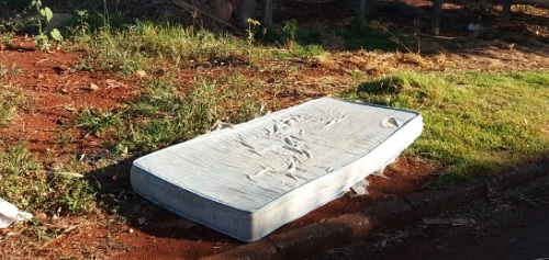 "Deixaram esse colchão na av. José Wierzchon, no jardim Albuquerque, em Campo Mourão".