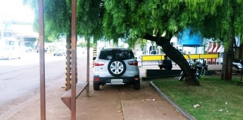 "Carro aguardando a circular em ponto na saída para Maringá, próximo ao novo Depósito Maia..."