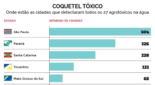 Das 25 cidades da região, 20 apresentaram 27 tipos de agrotóxicos na água consumida pela população.