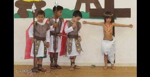 A prefeitura de Fênix fez nesta quarta-feira a entrega de chocolates para os alunos da rede municipal. O prefeito Neno Molina acompanhou. Mas nao foi só chocolate, não. As crianças participaram de apresentações organizadas pelas escolas para comemorar a Páscoa. Teve até Paixão de Cristo na versão infantil.