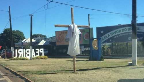 Cruz com manto colocada na entrada de Peabiru para marcar a Semana Santa.
