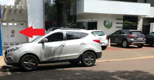 No centro de Campo Mourão, carro estaciona em frente a portão de garagem. Nem adiantou a placa colocada pelo morador.