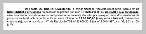 Saiu mais uma liminar suspendendo a divulgação de pesquisa eleitoral em Campo Mourão.