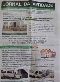 Alegou que a publicação trazia mentira sobre o candidato a vice-prefeito, o vereador Agilson Flausino.