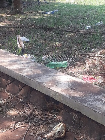 Muita sujeira na praça do Fórum. Tem até cabeça de porco.