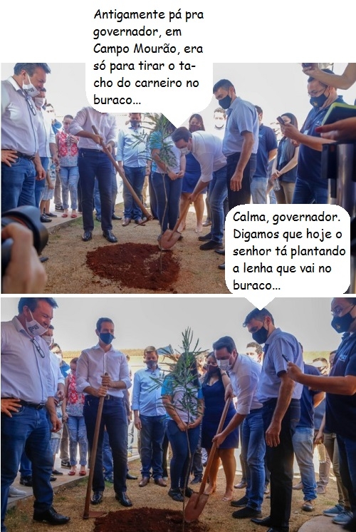 Os cliques são desta quinta-feira, na inauguração do colégio Novo Horizonte, em Campo Mourão. O governador Ratinho Jr teve de pegar na pá para plantar um árvore. O secretário de Estado Renato Feder (Educação) ajudou com a enxada. O prefeito em exercício Beto Voidelo e o secretário Márcio Nunes, com anfitriões, ficaram no "incentivo".