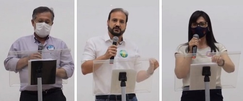 Os três candidatos a prefeitos de Campo Mourão estiveram nesta terça-feira à noite no Sindiscam. Entregaram a resposta a 31 questionamentos do sindicato e falaram, cada um, por 10 minutos. O encontro, sem público presencial por causa da pandemia, foi transmitido pelo Facebook.