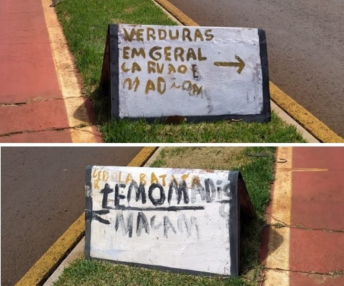 A placa não devia estar sobre o passeio público, mas já que está alguém consegue "traduzir" a mensagem inteira?...