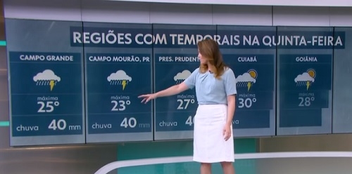 Olha Campo Mourão, de novo, em destaque na programação nacional da Rede Globo por causa da previsão do tempo. Nesta quarta-feira foi no "Jornal Hoje". Segundo Eliana Marques, pode haver temporal na quinta-feira no Paraná e chover cerca de 40 mm em Campo Mourão. É a mesma previsão para Campo Grande/MS e Presidente Prudente/SP.