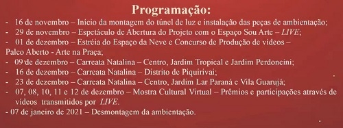 Por exemplo: O espetáculo de abertura, dia 29 de novembro, será por live.