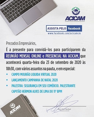 A Acicam realiza reunião mensal nesta quarta-feira (18h30).
