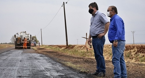 Mauro Slongo, prefeito de Luiziana, sobre o início do recape da PR 553, que que liga a cidade à BR-487. Serão recapeados 4,62 km do trevo até a cidade e 2,1 km no perímetro Urbano. A demora foi porque a empresa contratada pelo DER estava trabalhando em outra rodovia; nesta segunda-feira.