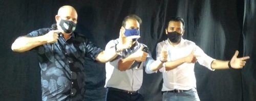 Os deputados Soldado Adriano José (estadual) e Sargento Fahur (federal) participaram da convenção de Rodrigo Salvadori. Como bons bolsonaristas que são, não saíram sem fazer "pose de arminha" ao lado do pré-candidato.