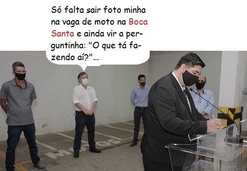O clic é desta sexta-feira, quando a Câmara deu posse ao vereador Claudinei Grella (Cidadania). Por causa da pandemia, a cerimônia foi no estacionamento do legislativo. O prefeito Tauillo Tezelli prestigiou o evento e ficou na vaga das motos...