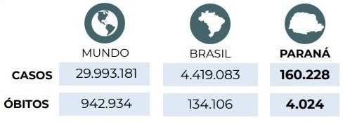 No Brasil - Em todo o País já foram 134.106 óbitos pela doença, ou seja, precisaria somar os moradores de Campo Mourão (95.488), Goioerê (28.808) e Roncador (9.645).