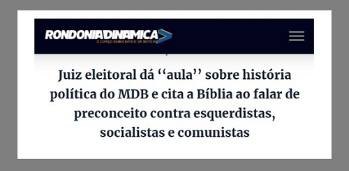 Olha a notícia que saiu nesta sexta-feira no site Rondônia Dinãmica: "Juiz eleitoral dá "aula" sobre história política do MDB e cita a Bíblia ao falar de preconceito contra esquerdistas, socialistas e comunistas".
