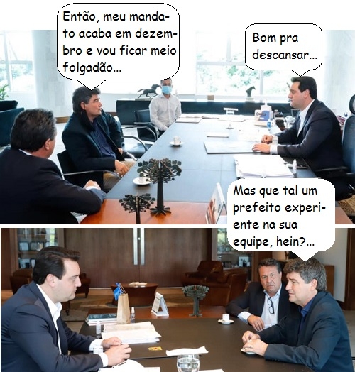 Os cliques são desta terça-feira, no Palácio Iguaçu, em Curitiba. O prefeito de Terra Boa, Valter Peres, não só entregou o título de Cidadão Honorário ao governador Ratinho Jr, não. Aproveitou para colocar a conversa em dia. O secretário de Estado Márcio Nunes acompanhou.