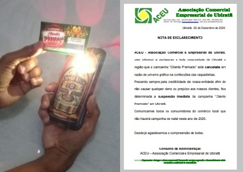 A Associação Comercial de Ubiratã cancelou a promoção Cliente Premiado.