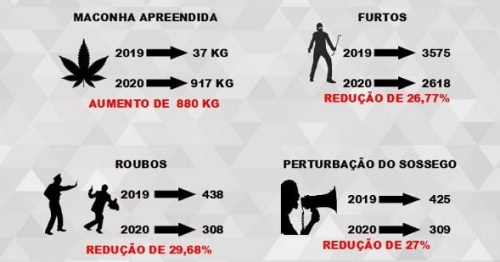 Os furtos foram de 3.575 para 2.618 e os roubos de 438 para 308.