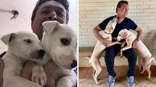 Lembra que em maio o secretário de Estado Márcio Nunes (Desenvolvimento Sustentável e Turismo) achou dois filhotes de cães abandonados? Estavam à beira de uma estrada em São José dos Pinhais. Ele fez campanha para localizar os donos. Nada. Depois falou em adoção. Nada. Acabou ficando com as duas cachorrinhas. Sete meses depois, olha o tamainho da Branca e da Neve...