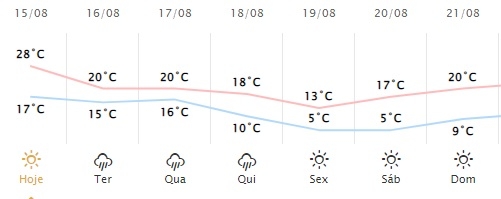 Vai chover terça, quarta e quinta-feira em Campo Mourão. E a temperatura vai cair. É o que diz a previsão do Simepar. A mínima cai para 10 graus na quinta e para 5 graus na sexta e sábado. O Climatempo, por sua vez, fala até em geada nesses dois dias, com mínima de 3 graus. A temperatura começa a subir no domingo, com minima de 9 de máxima de 20.