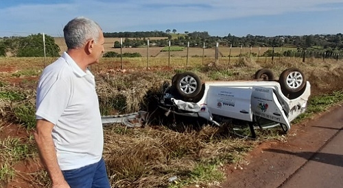 Susto na tarde desta segunda-feira PR-364, em Campina da Lagoa. Um veículo da saúde local saiu da pista e capotou. O motorista, uma enfermeira e um agente de saúde tiveram apenas escoriações e foram encaminhados para o hospital da cidade. O carro atendia o distrito de Sales de Oliveira e tinha cerca de três meses de uso. O prefeito Milton Luiz Alves esteve no local do acidente.