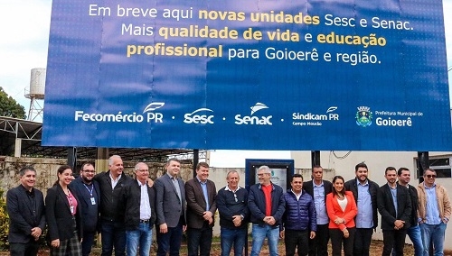 Sistema Fecomércio e prefeitura fizeram nesta segunda-feira o lançamento da pedra fundamental da unidade do Sesc/Senai de Goioerê. A obra deve ser iniciada ainda este ano, numa área de 20 mil m2 doada pela prefeitura. Fica no antigo pátio de máquinas do município. Serão 6 mil m2 de área construída, num investimento de R$ 20 milhões.