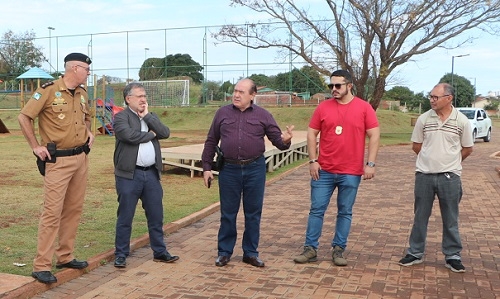 Prefeito de Campo Mourão, Tauillo Tezelli, o delegado-chefe da 16ª SDP, Nilson Rodrigues da Silva, e o comandante do 11° BPM, tenente-coronel Adauto Giraldes, estiveram nesta segunda-feira no Parque da Pedreira. Nada de passeio. Nem de caminhadas. Foram tratar dos atos de vandalismo e dos furtos no local. O parque foi inaugurado este mês e já sofre com isso.
