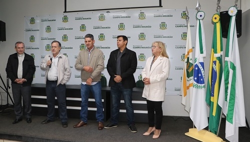 A prefeitura de Campo Mourão realizou cerimônia nesta sexta-feira para marcar os 58 anos de inauguração do Paço Municipal 10 de Outubro e da criação da bandeira do município. Ambos são de 29 de junho de 1964. A construção do prédio foi iniciada em 1962, quando o prefeito era Antônio Teodoro de Oliveira. Dois netos dele - Régis Cristiano Pol e Angela Maria de Oliveira - participaram da solenidade. Na inauguração o prefeito já era outro, Milton Luiz Pereira.