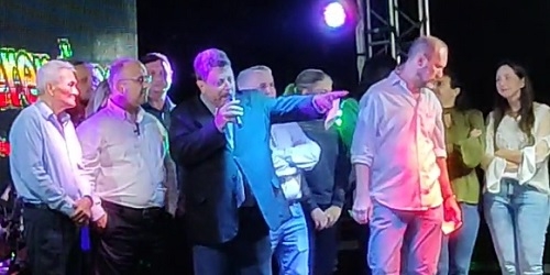 Airton Agnolin, prefeito de Nova Cantu, fazendo uma ressalva após elogiar a atuação da Câmara de Vereadores; em discurso na inauguração do posto de saúde do distrito de Santo Rei; sábado.