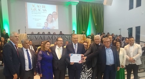 A Câmara de Ubiratã entregou neste sábado moção para o secretário de Saúde e ex-vice-prefeito Orlando Francisco Vieira Filho. Mas não foi pelo trabalho na pasta nem pelo ter sido vice. A homenagem foi pelos 35 anos em que Orladinho atua como regente da Orquestra Harmonia Celeste, fazendo trabalho de evangelização através da música.