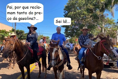 O clic é de sexta-feira, em Nova Cantu, durante a festa da padroeira Nossa Senhora de Fátima. O deputado federal Ricardo Barros, líder do governo Bolsonaro, e a filha, a deputada estadual Maria Victória, estiveram por lá. Com direito a cavalgada e tudo. Pai e filha também foram a Ubiratã, Campina da Lagoa, Roncador e Iretama.