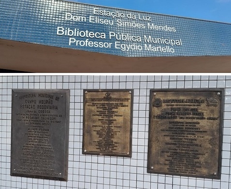 Lembra que a prefeitura desmanchou o "placódromo" que existia em frente à Estação da Luz, em Campo Mourão? Aquilo parecia um túmulo. Agora ficou assim. O letreiro com o nome da estação deixou o tótem e foi para cima do prédio. As placas de inauguração foram para a parede. Com isso, liberou espaço para ações culturais, como já aconteceu no Festival de Circo.