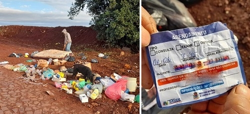 A prefeitura de Campina da Lagoa sofre com lixo jogado em lugares inadequados. Isto acontece com frequência nos arredores do aterro sanitário. Desta vez, no entanto, quem jogou cometeu um descuido. Deixou no lixo um agendamento de consulta médida com o nome do paciente. "Será notificado", frisou a prefeitura em postagem em redes sociais.