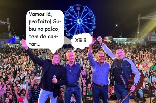 O clic é de sexta-feira, em Janiópolis, quando a dupla Gian & Giovani se apresentou na festa dos 60 anos do município. O prefeito Ismael Dezanoski e o vice-prefeito Eides Guedes subiram no palco e tudo. A festa também teve Munhoz & Mariano, sábado; e Bonde do Forró no domingo.